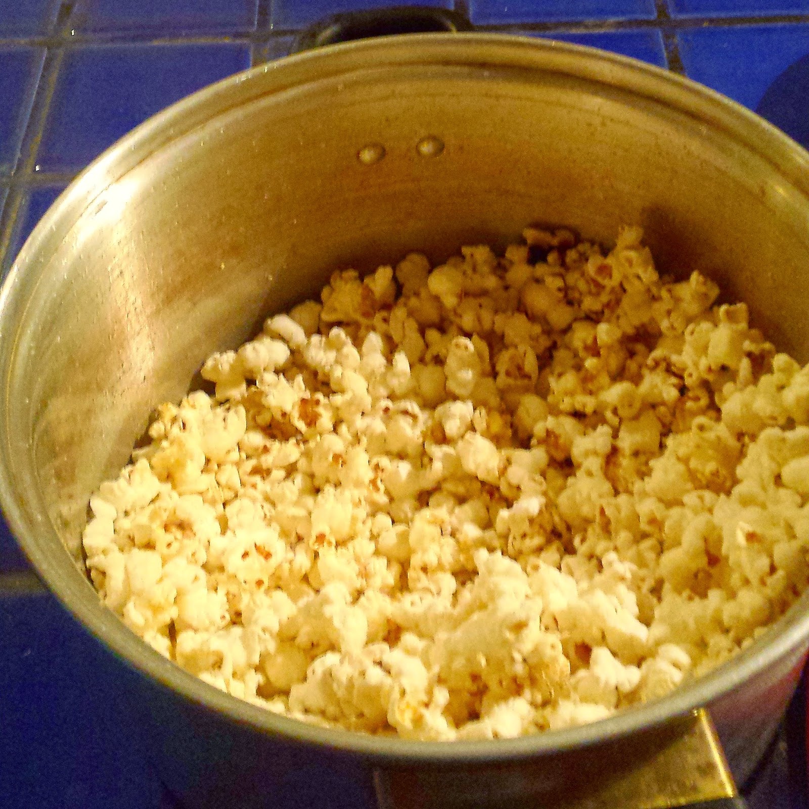 #1–YUM! Throw a bit of coconut oil in a pot with a lid. Put it on a burner, put some popcorn kernels in, and voila! Until I hear otherwise, coconut oil is supposed to keep you alive and young looking forever. This is also really cheap!